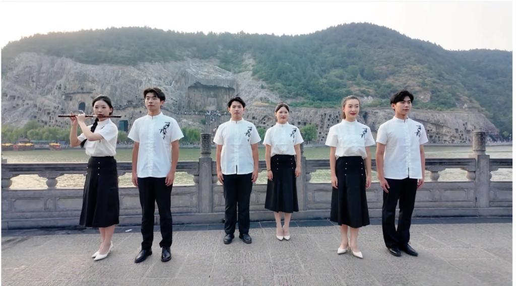 本次合诵作品由朗诵艺术团成员与全国各省区39家国家语言文字推广基地一起创作,于9月30日“典耀中华”主题读书——全国校园节庆日诵读国庆直播活动(第二场)中播出。团队成员在三位教师的指导下,与学校语委、洛阳市电视台共同录制的《千年帝都》诗朗诵节目荣登洛阳广电视频号,一起用诵读经典的方式礼赞伟大祖国。