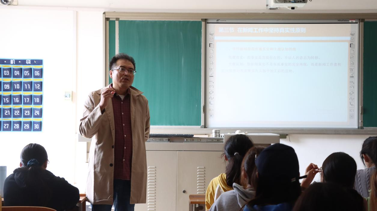课上,宁威老师以其扎实的专业知识和丰富的教学经验,聚焦“新闻工作中坚持真实性原则”这一关键知识点展开细致讲解。他运用多个新闻案例进行分析,结合深入浅出的理论阐述,让学生们深刻领会到真实性是新闻的基石这一核心要点。在教学过程中,宁威老师注重引导学生思考新闻真实性在实际工作中的体现和重要性,激发了学生对新闻专业的热爱和对职业道德的敬畏之情。