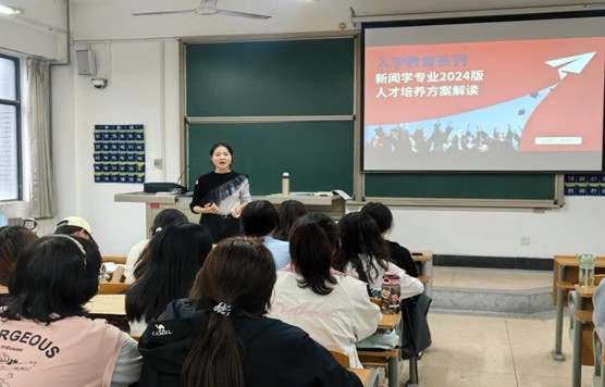 为适应全媒体时代行业发展需求,全面提升人才培养质量,近日,新闻系负责人李丹丹老师向2024级全体新闻学专业新生详细介绍了新版人才培养方案在课程设置、实践教学环节等方面的设计理念和就业要求。