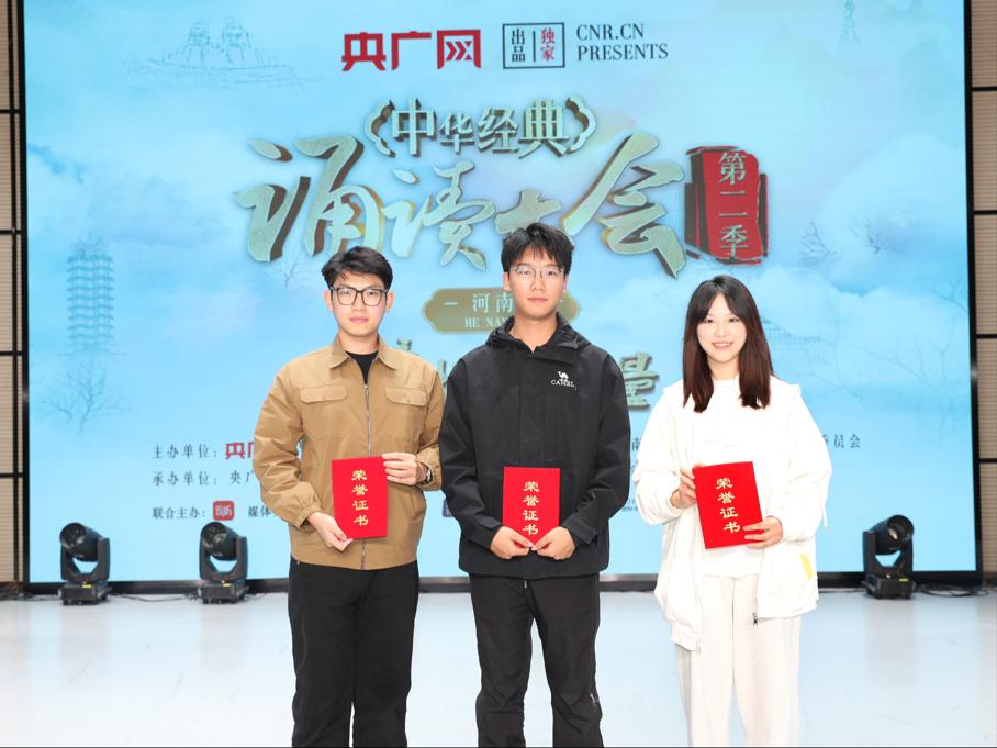 用诵读致敬经典,让经典生生不息。近日,由河南省委网信办、河南省总工会、共青团河南省委、中央广播电视总台央广网联合主办的大型文化展演活动榜样的力量暨中华经典诵读大会(第二季)河南站总决赛在郑州工商学院顺利举行,我院三件参赛作品均获奖。由李姗姗等指导2022级播音与主持艺术专业蔡志豪诵读的《行路难三首》获河南省大学生组特等奖。由白溯等指导2022级播音与主持艺术专业程啟源、2023级播音与主持艺术专业张黎硕诵读的《梦系南疆》,由姚智清等指导2022级播音与主持艺术专业蔡志豪、程啟源诵读的《兵车行》均获团体组二等奖。其中,《行路难三首》成功入围全国总决赛。