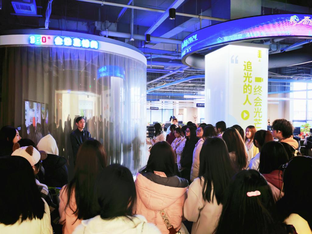 活动中,洛阳广播电视台全媒体新闻中心传播部部长郭长伟带领同学们参观了360度全景直播间和智能电子荧幕,观摩了多部台内视频新闻及文旅宣传片。在洛阳广电博物馆内,同学们沉浸式体验了胶片和传统技艺所带来的艺术价值,了解了演播设备的历史变迁,更明确了作为传媒专业学生的职责使命所在。为了让学生们更加深入地了解制播流程,在交通广播FM92.7演播室、综合广播FM88.1演播室中,相关老师通过问答和亲身体验的方式,向学生们展示了新闻采编流程、节目制作技巧以及媒体技术应用。在答疑解惑的过程中,老师们还分享了自己多年的从业心得与经验,让同学们受益匪浅。