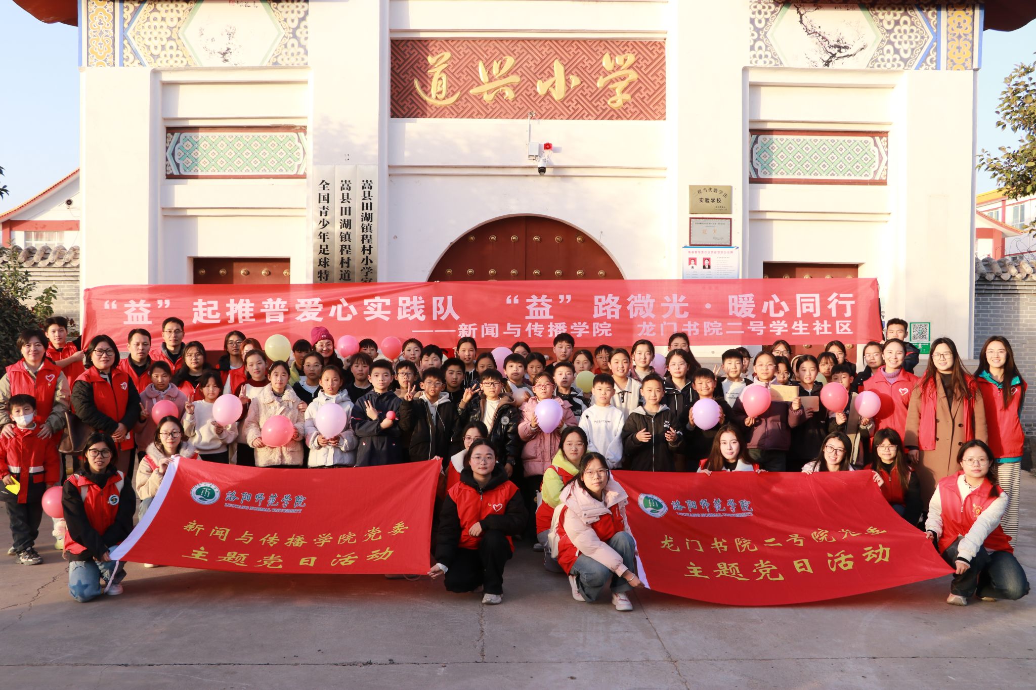 11月27日,新闻与传播学院与龙门书院二号学生社区组织师生,赴洛阳市嵩县田湖镇程村道兴小学,开展“‘益’路微光,暖心同行”主题公益活动,为学生送去冬日暖心物资,并为40余名乡村留守儿童开展心理团辅,以爱心护航儿童身心成长。