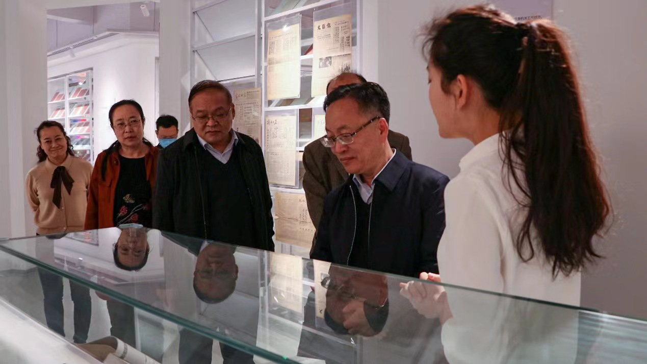 在新闻与传播学院,李庚香一行参观了中图期刊创刊号博物馆并了解了博物馆的建设情况,李庚香对中图期刊创刊号博物馆的建设予以充分肯定,并给出一系列指导性建议。他指出,作为国内首家期刊创刊号专题博物馆,应抓住当前全国学习雷锋的热潮,将该博物馆作为洛师的一大特点在网络上进行传播。