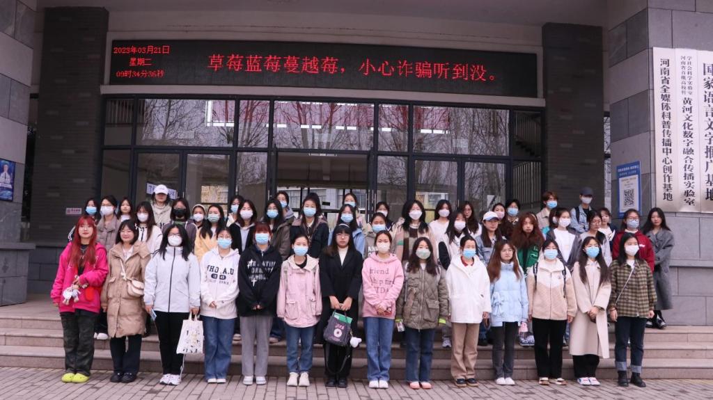 洛阳理工学院学生在洛阳师范学院新闻与传播学院正门留下合照