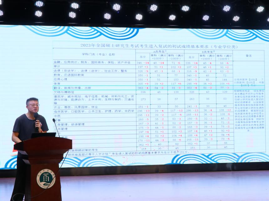 颁奖仪式结束后,校中外合作办学项目、中俄留学教育与服务中心负责老师吴鹏飞为实验班成员做了考研专题讲座。吴鹏飞老师对近三年来我院相关专业考研情况进行了分析,并针对同学们的问题给出了意见和建议,助力同学们制定适合自己的考研计划,找到科学的备考方法。