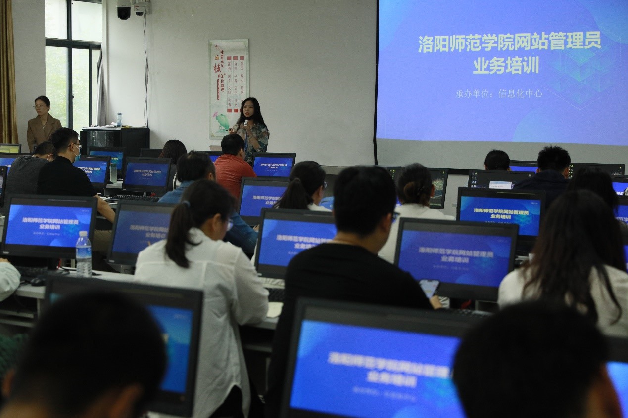 为规范我校二级网站管理与内容安全保障工作,提高各网站管理员业务操作能力和信息安全意识,4月20日下午,由信息化中心主办的洛阳师范学院网站管理员业务培训会在逸夫教学楼G5-304机房举行。信息化中心主任周震,信息化中心相关工作人员和来自校属各单位的70余位网站管理员到场参会。