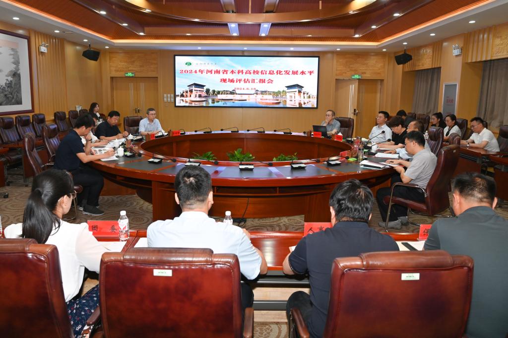 6月18日上午,以河南师范大学原党委书记王宗敏为组长的河南省本科高校信息化发展水平第二评估专家组一行四人莅校,对我校信息化建设情况开展评估。评估工作汇报会和反馈会在成均楼B301会议室举行,校党委书记郭改英、副校长赵邦屯出席,学校相关部门负责人参加会议。