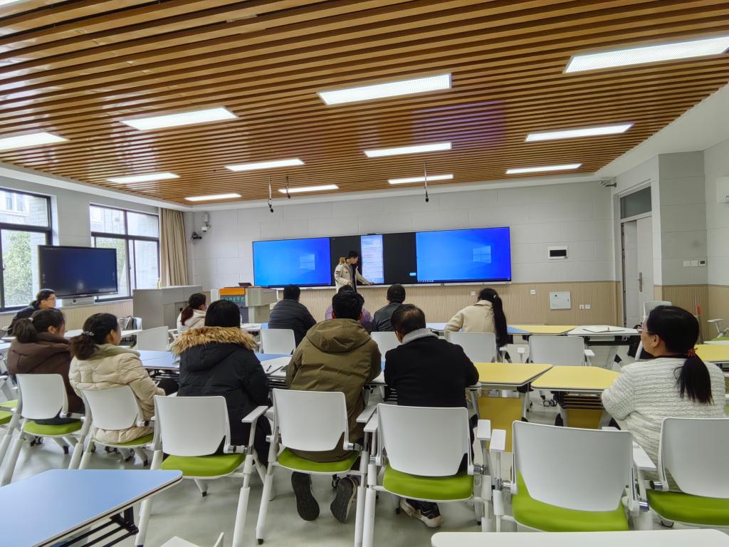 培训过程中,技术人员深入学习了智慧教室三联屏的操作技巧,详细探讨了教师使用过程中常见问题的处理方法。同时,对无线投屏的便捷使用方法、小组屏的互动连接技术以及讯飞 AI 微课录制与语音转写软件的高效应用等内容进行了全面学习。