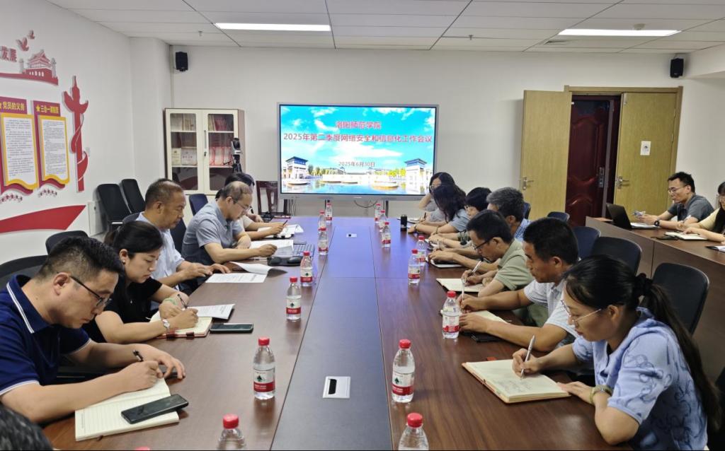 2025年6月30日下午,洛阳师范学院2025年第二季度网络安全和信息化工作会议在图书馆C602召开,会议由信息化中心主任周震主持,副校长赵邦屯出席会议,党委宣传部、党委教师工作部(人事处)、党委学生工作部(学生处)、党委保卫处(保卫处)、教务处、科研处、财务处、后勤处、实验室建设与管理中心、团委、食品与药品学院、物理与电子信息学院、生命科学学院、学前教育学院等单位负责人参加了会议。