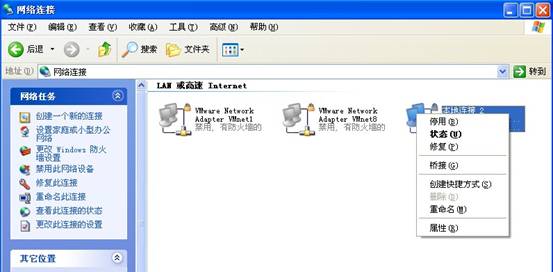 à查看网络à在本地连接上点击右键中选择“停用”)