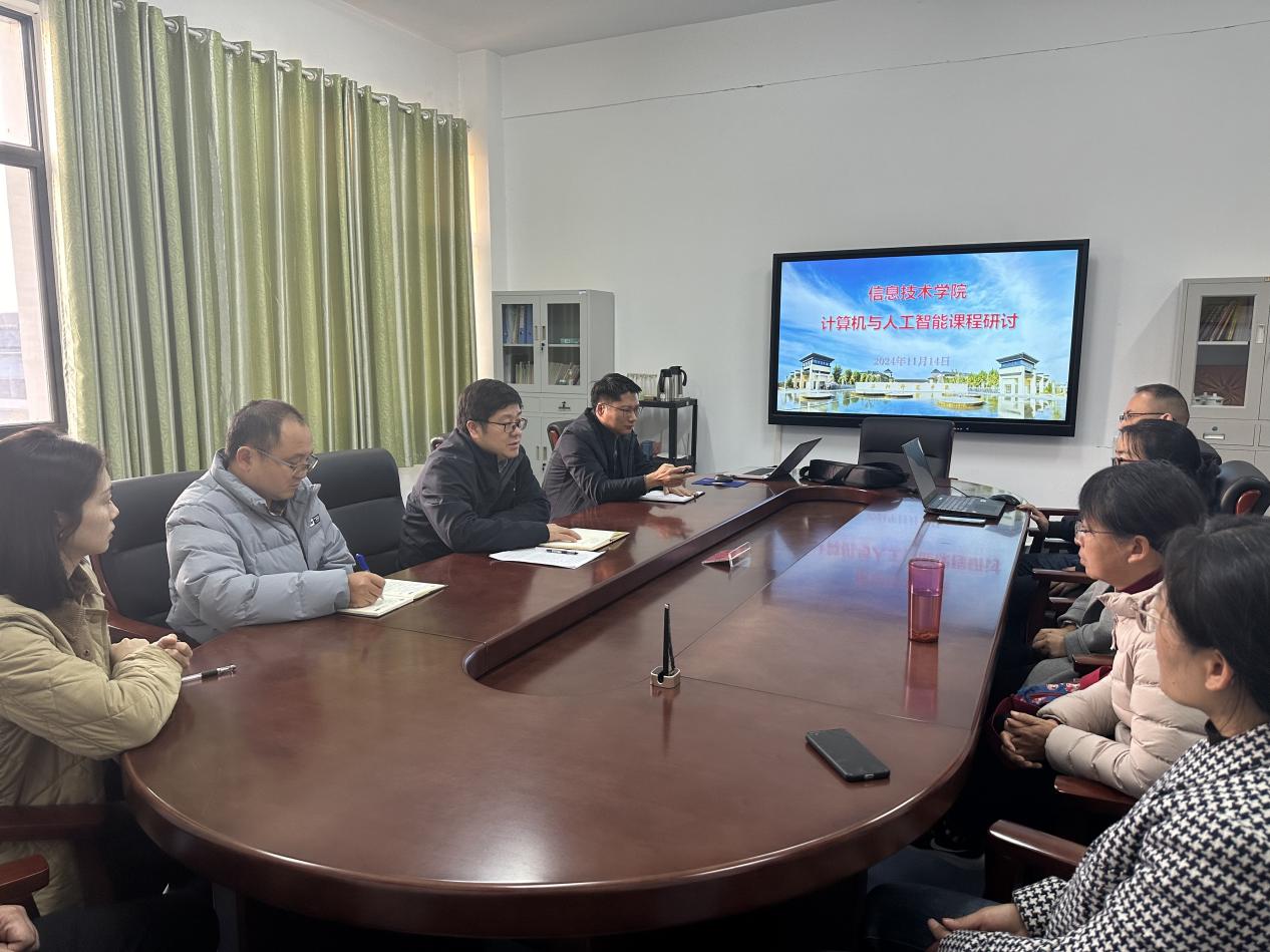 为深化教育科技人才体制机制一体改革,推动人工智能通识课程及教材建设与时俱进,11月14日,我院在信息楼501会议室举行人工智能通识课程及教材建设专题研讨会,教务处副处长马友忠、学院副院长李德光、通识教育骨干教师参加会议。