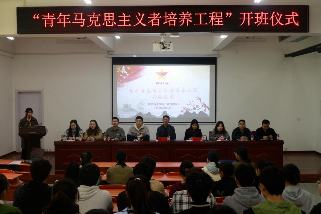 会议伊始,全体起立,奏唱国歌,全体参会人员共同观看青马工程宣传片。董欢欢宣读信息技术学院(软件学院)“青年马克思主义者培养工程”方案,对青马班的选拔标准、培养方式、培养原则、课程设置、考核要求等五个方面做了阐述。