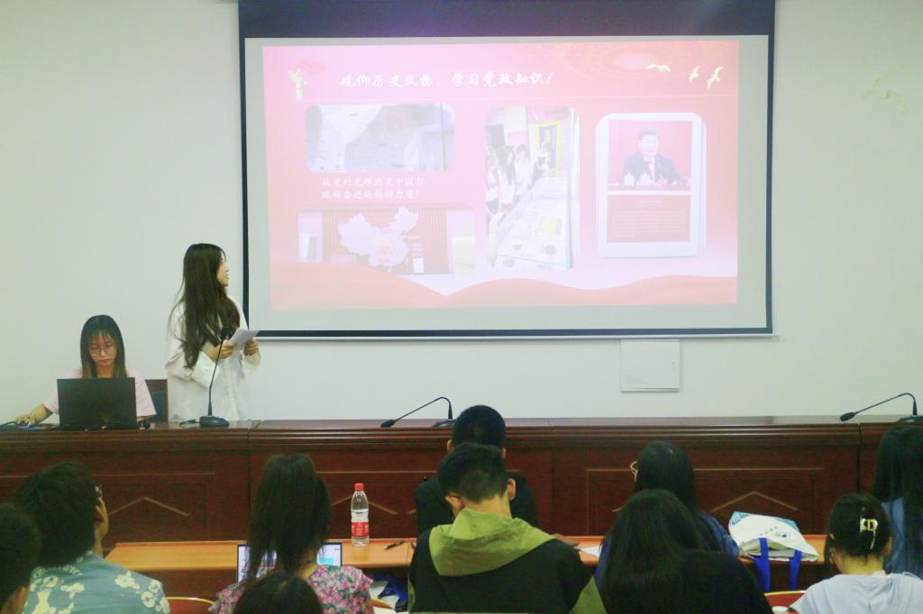 张倩倩介绍了本次初赛的规则与流程,每个团支部围绕“青春践行二十大,志愿奉献正当时”主题依次上台进行支部展示,展示内容以参观红色基地、参加志愿服务、阅读红色书籍、回望党史、奉献青春等为主。桑建强对各个团支部逐一点评,指出其中存在偏离主题、演讲内容单一等问题。张倩倩指出在汇报时应表明汇报人身份、演讲字数、PPT张数及视频时长等细节问题。最后,张倩倩现场公布各团支部分数及排名,并为一等奖2名团支部,二等奖3名团支部,三等奖4名团支部依次颁发获奖证书,合影留念。