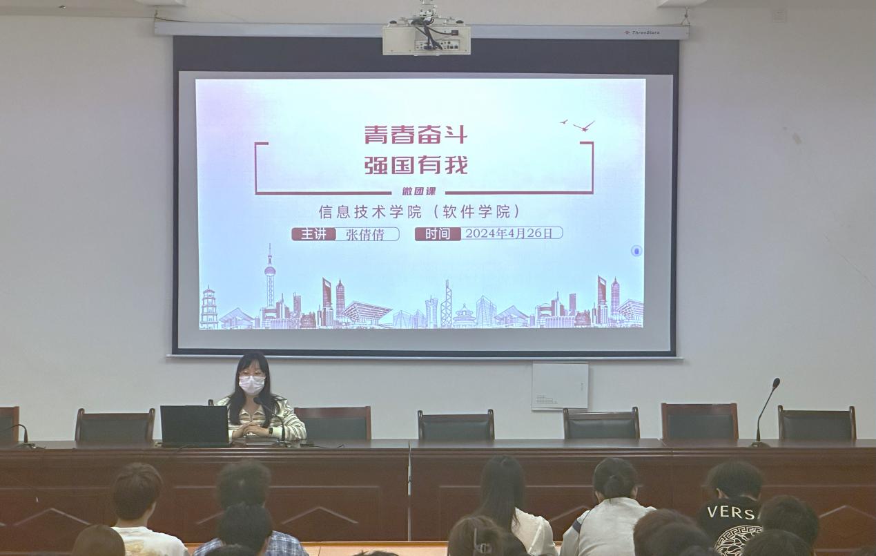 4月26日,我院团委副书记张倩倩在信息楼一楼报告厅讲授以“青春奋斗,强国有我”为主题的团课,院组织部负责人、23级学生团干积极参加。
