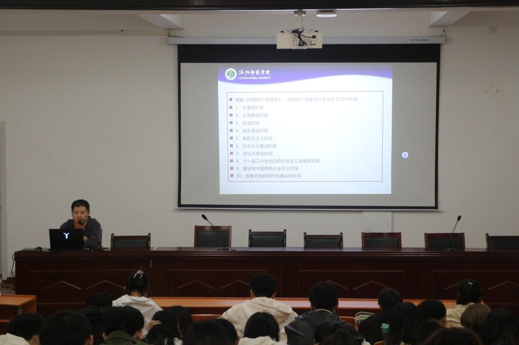 10月24日下午18时30分,我院副院长贾世杰于信息楼一楼报告厅开展以《学党史、强思想》为主题的专题党课,我院全体积极分子积极参加,认真聆听。