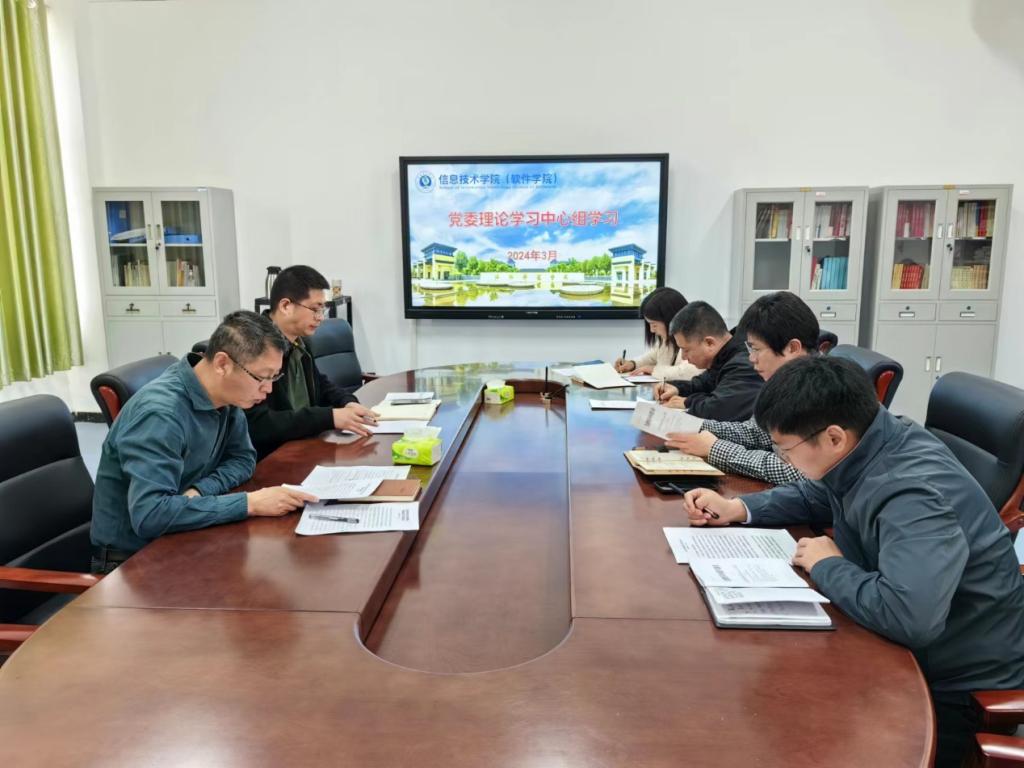 3月29日下午2时30分,我院于信息楼A13-501召开党委理论学习中心组学习会,集中学习了习近平总书记在全国两会期间重要讲话精神;2024年政府工作报告;习近平总书记在考察湖南第一师范学院时的重要讲话精神;《求是》杂志发表的习近平总书记重要文章《时刻保持解决大党独有难题的清醒和坚定把党的伟大自我革命进行到底》;2024年河南省政府工作报告;《中国共产党纪律处分条例》。我院党委理论学习中心组成员参加会议,会议由学院党委书记曹凡主持。
