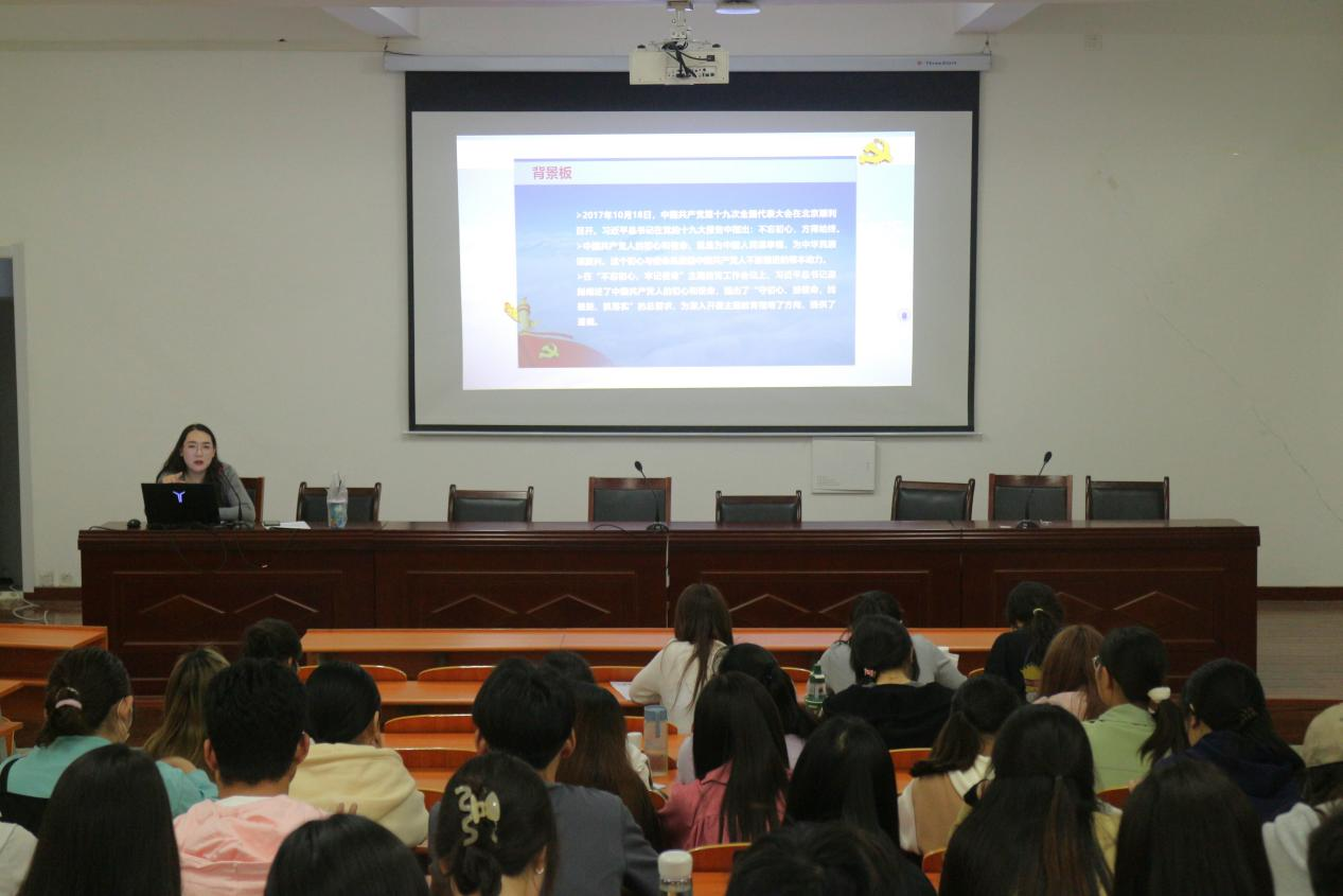 4月15日18时30分,我院21级辅导员马玉婷于信息楼一楼报告厅开展专题党课“中国共产党人的初心和使命”,我院全体入党积极分子及预备党员参加。