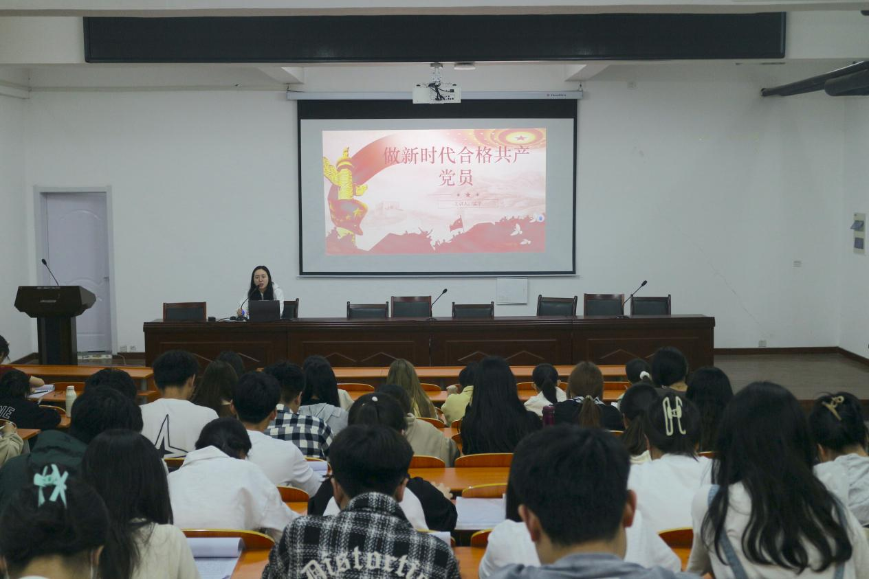 4月16日18时30分,我院23级辅导员孟宇在信息楼一楼报告厅讲授专题党课“做新时代合格共产党员”,我院全体预备党员及入党积极分子参加。