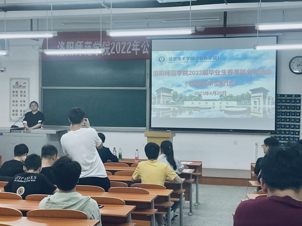 4月20日下午2点,我院于逸夫四号楼承办了洛阳师范学院2023届毕业生春季就业双选会(信息技术类专场),7家用人单位和70余名2023届毕业生参加。信息技术学院就业办公室刘家豪老师主持招聘会。