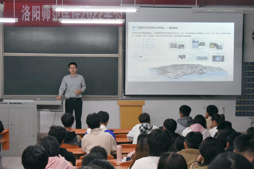 本次招聘会主要由洛阳众智软件科技股份有限公司陈硕讲解。首先,陈硕介绍了该公司成立于2000年,主要业务专注于大型工业软件三维图形基础平台研发,并依托平台打造行业应用系统。洛阳众智软件科技股份有限公司现有员工600余人,总部位于洛阳,在北京、合肥、西安、武汉各地另设分公司,是国家“专精特新”小巨人企业,近三年来年研发投入均超4000万元。其次,他介绍了该公司的诸多优秀成果,如三维CAD平台Cityplan投入累计超一亿,对标国外,能在软件上快速建模、渲染从而打造场景,行业应用覆盖自然资源、智慧城市、军工领域等。最后,同学们认真思考,踊跃提问,陈总耐心地为同学们解答,现场反响热烈。
