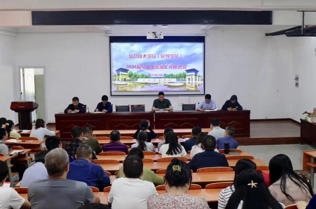 为进一步推进2024届毕业生就业工作落细落实落地,实现毕业生更充分、更高质量就业,4月25日下午,我院于信息楼报告厅召开2024届毕业生就业工作推进会。学院全体班子成员、全体教职工参加推进会。推进会由院长张永新主持。
