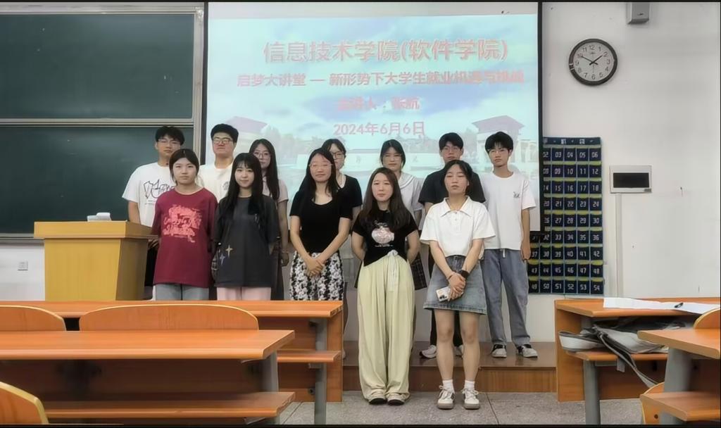 6月6日15时,我院在逸夫四号楼102教室举办“启梦大讲堂——新形势下大学生就业机遇与挑战”主题讲座。本次讲座特邀我院优秀毕业生、洛阳市双语实验学校信息技术教师张航主讲,各年级学生代表参加。