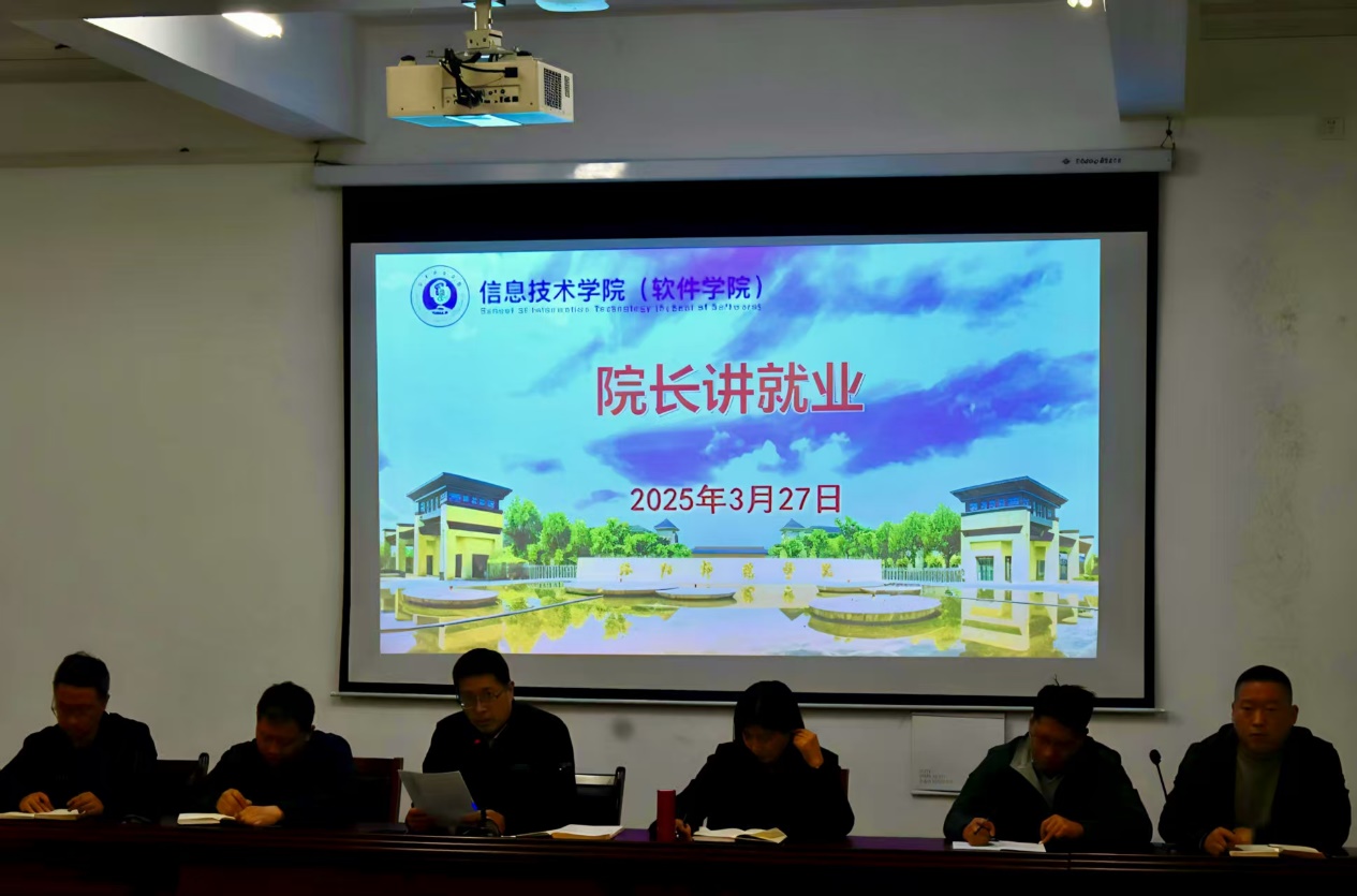 为帮助学生明确职业规划,树立正确的择业观、就业观,扎实推进学院2025届毕业生就业工作。3月27日,信息技术学院(软件学院)在1楼学术报告厅举办“院长讲就业”专题讲座,学院领导班子成员、2021级班主任及学生代表参会。