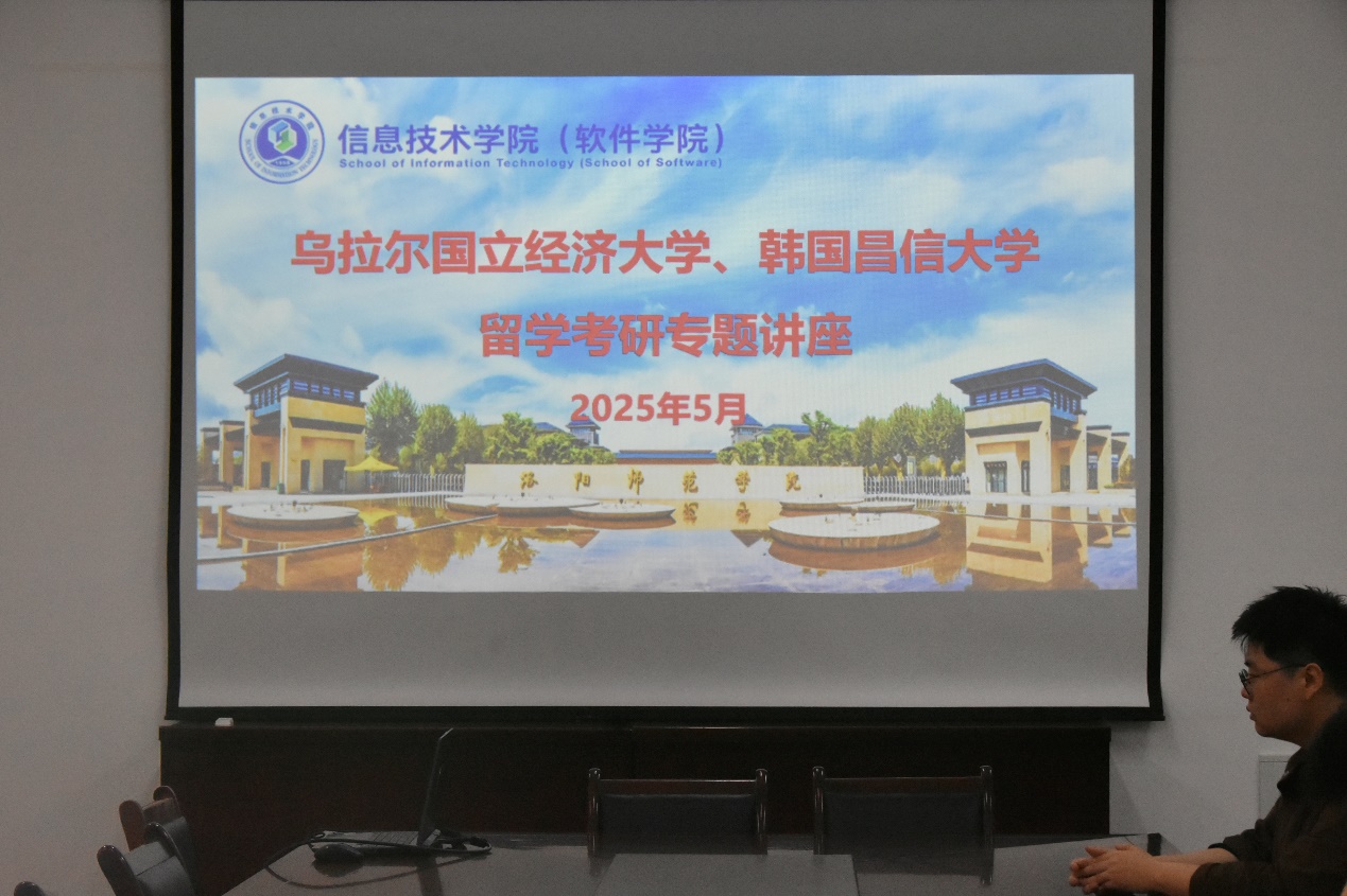 5月8日上午11时,信息技术学院(软件学院)于信息楼A13-515举办乌拉尔国立经济大学、韩国昌信大学留学考研专题讲座,21、22级学生积极参与。
