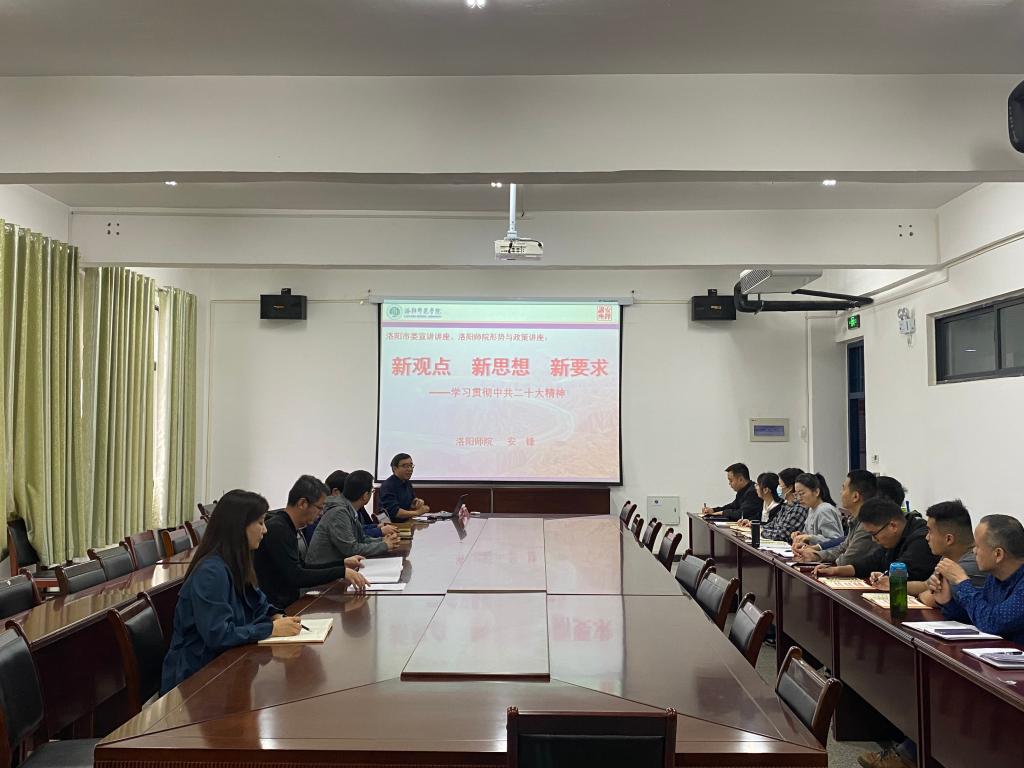 之后,我校党的二十大精神宣讲团成员安锋同志为大家做《新观点 新思想 新要求》专题报告。安峰从党的二十大开幕会为切入点,列举党的二十大代表王亚平、苏明娟等代表,让全体参会人员深刻体会中国由站起来到富起来到强起来的伟大变革。他表示,全体党员要带着信仰学、带着感情学、带着责任学,认真读原著学原文悟原理,不断增进对党的创新理论的政治认同、思想认同、理论认同、情感认同,更加自觉深刻领悟“两个确立”的决定性意义,增强“四个意识”、坚定“四个自信”、做到“两个维护”。要在深学细思笃行中提高理论素养、增强能力本领,切实把习近平新时代中国特色社会主义思想转化为坚定理想、锤炼党性和指导实践、推动工作的强大力量。要强化责任忠诚担当,自觉用党的创新理论观察新形势、研究新情况、解决新问题。