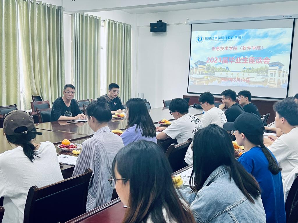 5月15日下午,信息技术学院在学院5楼会议室召开毕业生座谈会,学院党委书记曹凡、毕业班辅导员刘家豪与20余名2023届毕业生代表进行了座谈交流。