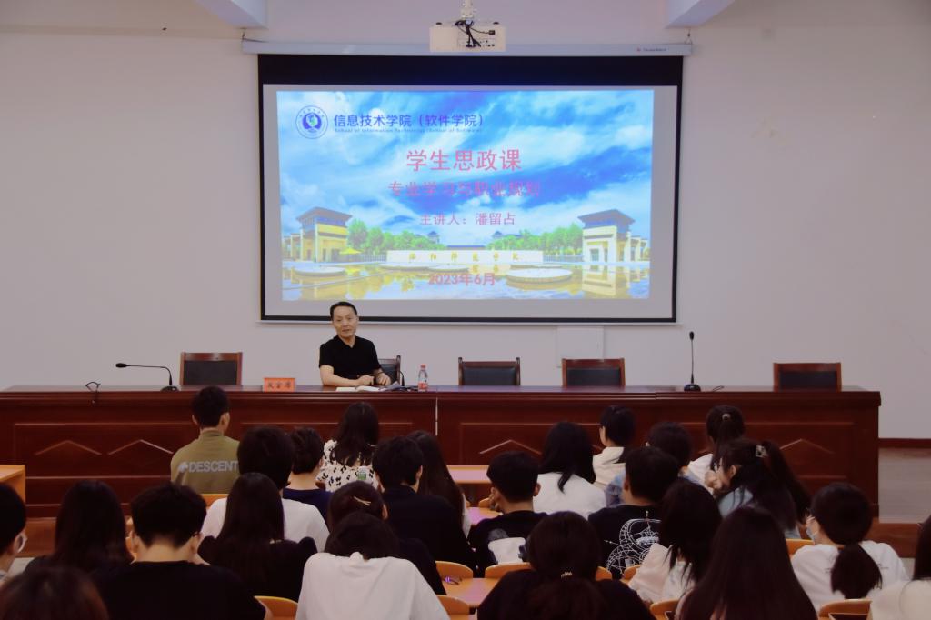 6月1日下午14点30分,副校长潘留占在信息楼一楼报告厅为我院2022级计算机科学与技术班学生讲授思想政治课。