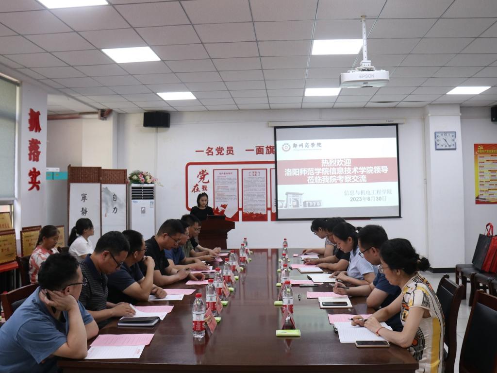 6月30日上午,洛阳师范学院信息技术学院院长张永新、副院长李德光及各教研室主任等一行11人赴郑州商学院考察交流。郑州商学院院长张晓冬、副院长张伟华以及各教研室主任参加了座谈交流活动。