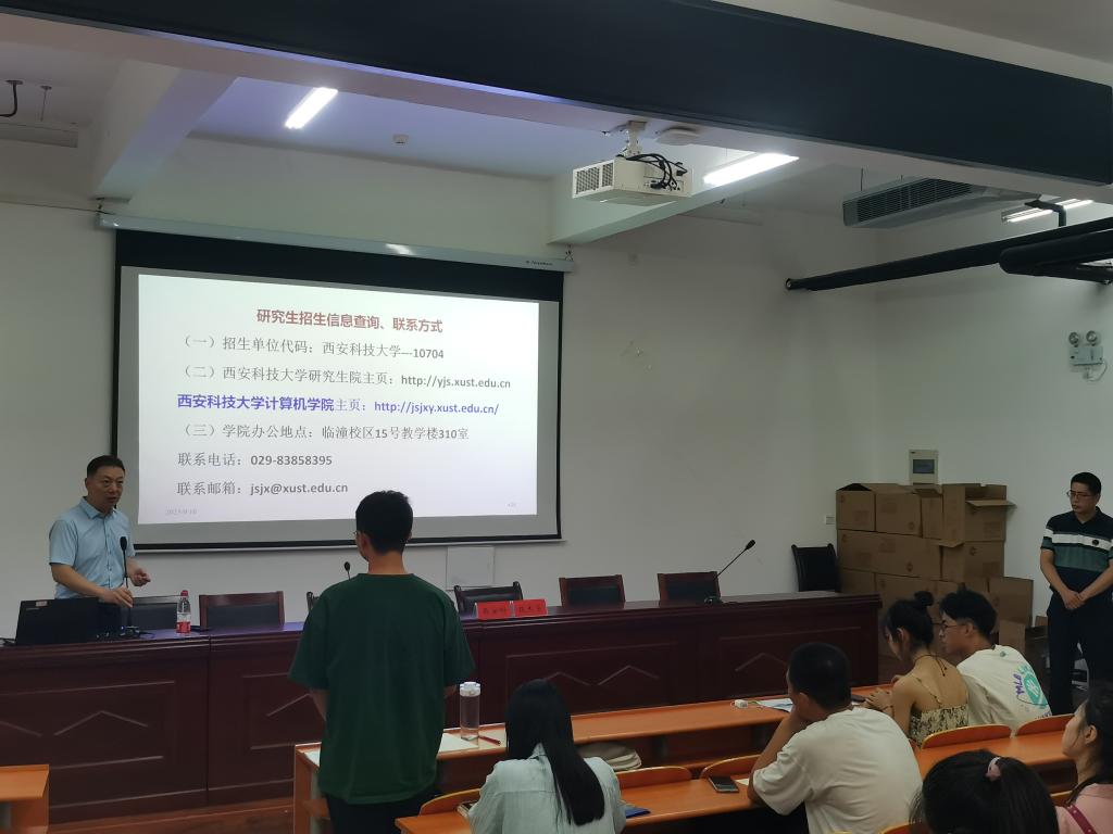 为了进一步提高学生的考研热情,调动考研积极性,明确考研目标,掌握考研技巧,9月10日,我院2020级学生考研规划专题讲座在信息楼一楼报告厅召开。本次讲座特邀西安科技大学、信阳师范大学知名教授现场宣讲,并邀请西北师范大学、河南理工大学、北方民族大学进行视频宣讲。