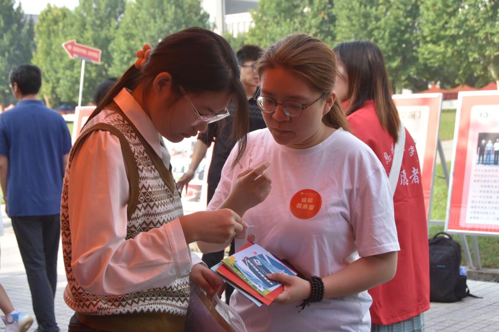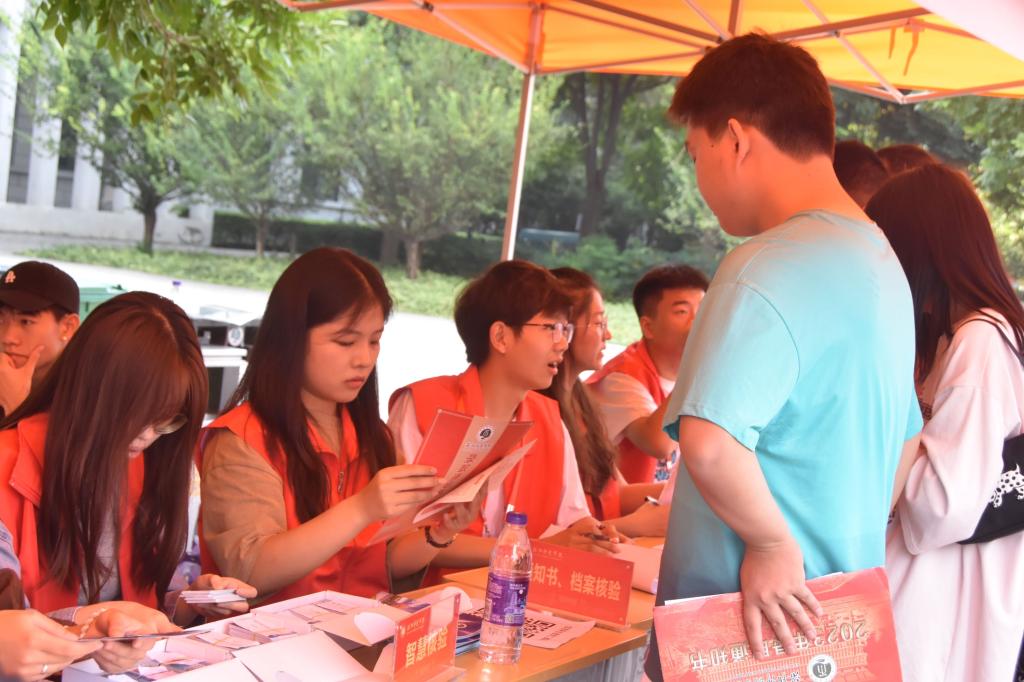 上午8点,我院迎新工作正式开始。我院院长张永新、党委书记曹凡、副书记董欢欢深入迎新现场,了解迎新工作进度,与新生热情交流并答疑解惑。辅导员、宿管阿姨、志愿者、安全员、执勤人员等积极到岗,为新同学报到提供便利。今年我院组织萌新帮帮团,由高年级学长学姐与新生组队,入学前线上沟通,迎新点碰头对接,引导新生核查信息,安排宿舍后带领新生到逸夫楼四号楼完成报道。在路途中有执勤人员维护交通秩序,安全员保障学校宗教“双防”工作顺利开展。新生在报到点进行信息核验,领取一卡通、学生手册等相关材料并进行银行卡的领取与激活。他们用饱满的热情迎接一批又一批新生和家长的到来,力求让他们初到校园便感受到学院的温暖。报到完成后,新生与家长游览校园风景,恰谈中有温情嘱托、殷殷期盼以及对校园生活的美好期望。