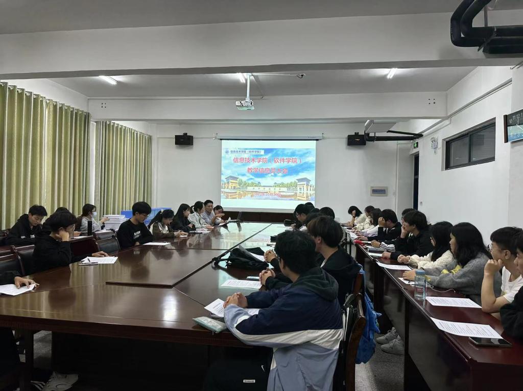 为了更好地促进学院良好教风和学风的形成,促进教学管理水平的提高,10月25日下午,我院全体学生教学信息员大会在信息楼五楼会议室515召开,教学副院长李德光出席会议,教学秘书朱婷婷、教务员耿克然及刘孝飞、学院全体学生教学信息员参加会议。