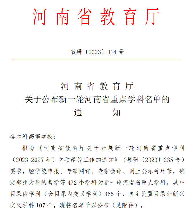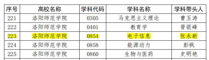 近日,河南省教育厅公布《关于公布新一轮河南省重点学科名单的通知》(教研〔2023〕414号),我院申报的“电子信息”专业学位类别获批第十批河南省重点学科,标志着我院学科建设迈上了新的台阶,将进一步促进学院的学科建设和人才培养。