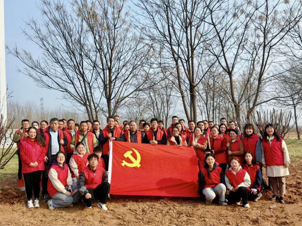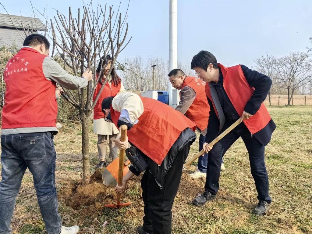 植树现场,党旗飘扬,我院党员干部以身作则,充分发挥模范带头作用。众人齐心协力,挥锹铲土、栽种树苗、踏实填土、浇水灌溉。在这片绿意盎然的土地上,志愿者们红色的身影与生机勃勃的绿色相映成趣,形成了一道独特的风景线。经过短短两个小时的努力,二十六棵梅花树苗全部扎根,新栽的树苗傲然挺立,生机勃勃,为校园注入了新的生机与活力。