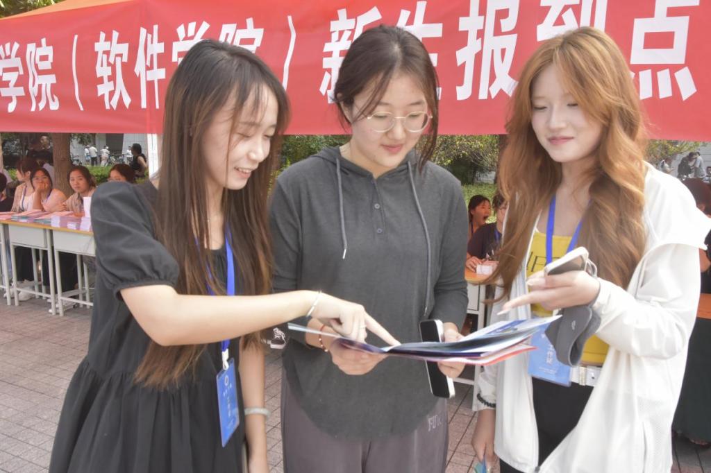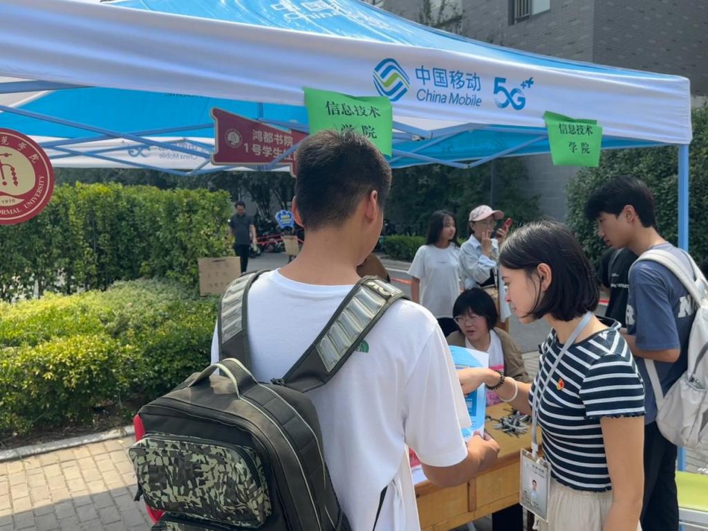 迎新当天,由学院老师和团学干部组成的志愿者队伍早早地就在太学广场和各书院广场上的迎新点位开始布置准备,满怀期待地迎接新生们的到来。迎新点附近陈列的互动展板展示学院风采,横幅标语传递热情。