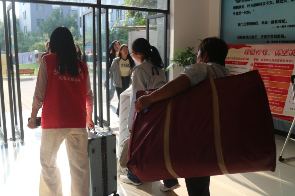 资格审核、缴费确认、档案收取、必需品的发放,学生志愿者们个个精神饱满,以高度的责任心与满腔的热情,确保每位新生的入学信息准确无误。与此同时,班主任与辅导员穿梭于人群之中,耐心细致地为新生和家长的各种疑问,强调了提高防诈骗意识与用电安全知识的重要性,消除了新生及家长的顾虑与困惑。