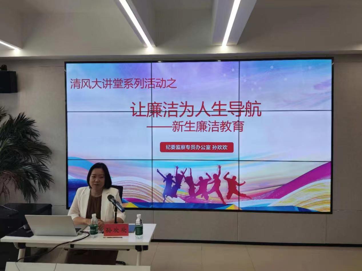 孙欢欢老师首先以最小的贪官、学生干部乱象、就业陷阱等案例为引子,分别从“为什么要对大学生开展廉洁教育”“什么是廉洁”“我们应该怎么做”三个方面进行解读。她指出,开展廉洁教育既是落实高校立德树人根本任务的内在要求,也是推进清廉学校建设的重要抓手,还是党风廉政建设和反腐败斗争的形势需要。最后,她结合自身经历,给同学提出了几点建议:一要多学、多看、多思考,培养自修之道;二要认真上好每一门课,掌握扎实的基础知识;三要积极参加社会实践,提升综合能力;四要严守纪律规矩底线,护航个人发展。