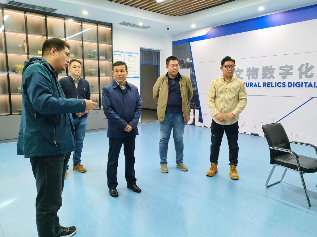 边宏军一行首先参观了学院就业创业孵化基地、文化遗产数字化保护与修复实验室等场所,详细了解了信息化技术应用于文化遗产保护和传播的关键技术研究和工程化应用平台研发工作概况,并充分肯定了我院在推动地方文化传承与创新发展中的重要作用。