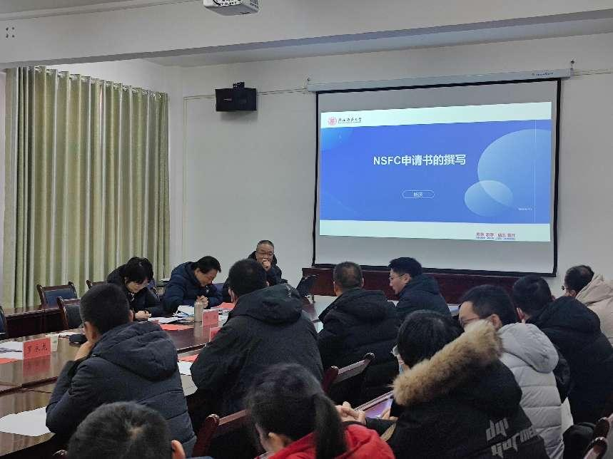 杨波教授作了关于国家自然科学基金的撰写报告,分享了基金申请的经验、体会,以自己获批的10项国家自然科学基金项目为例,展开案例分析,详细阐述了申报书每部分的撰写要点,分享了当时申请国家自然科学基金时的做法、思路和教训,使教师们对国家自然科学基金的撰写有了更清晰、更深入的认识和理解。报告结束后,现场教师积极提问,各位专家一一耐心解答,现场气氛热烈。此外,与会的五位专家对2025年申报国家自然科学基金的教师们采用一对一的指导方式,极大提升了本次论证会的成效和效率。
