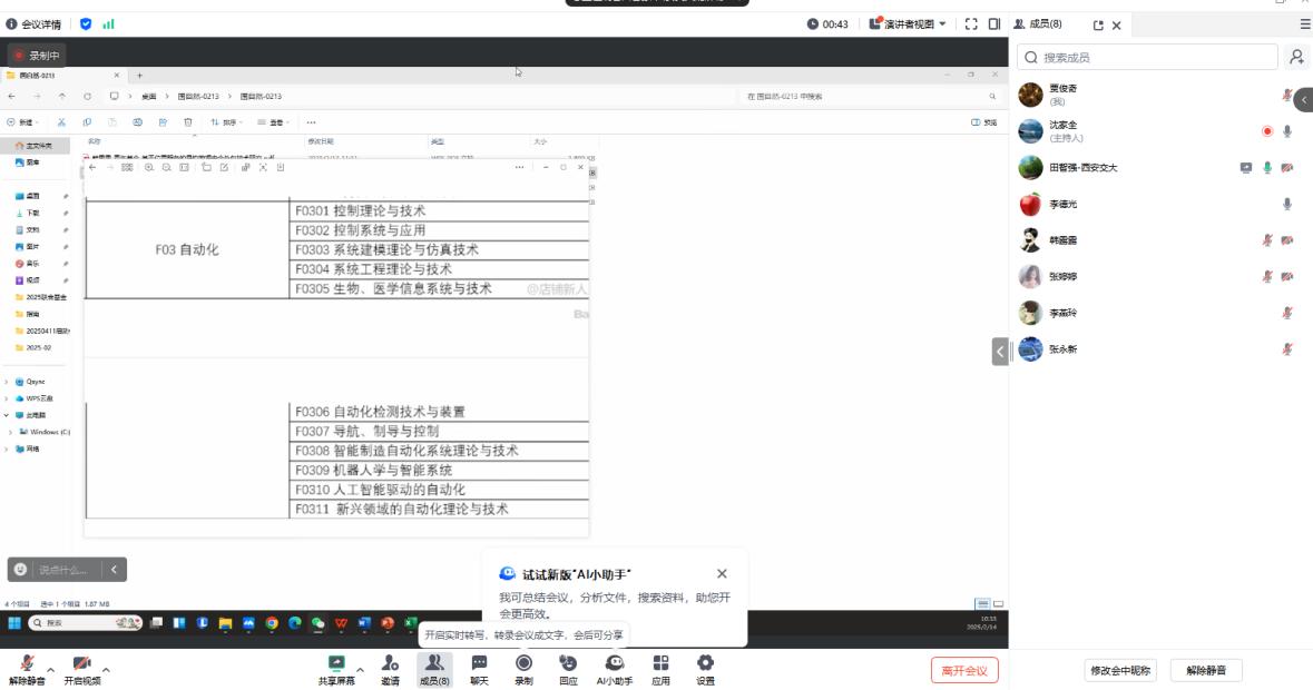 2025年2月14日上午,我院线上举行2025年国家自然科学基金项目申报论证工作推进会。会议邀请了西安交通大学的杜少毅和田智强教授,信息技术学院院长张永新、副院长李德光,科研秘书贾俊奇,青年博士沈家全、韩露露、李燕玲、张婷婷等拟申报2025年国家自然科学基金的教师参加了会议。