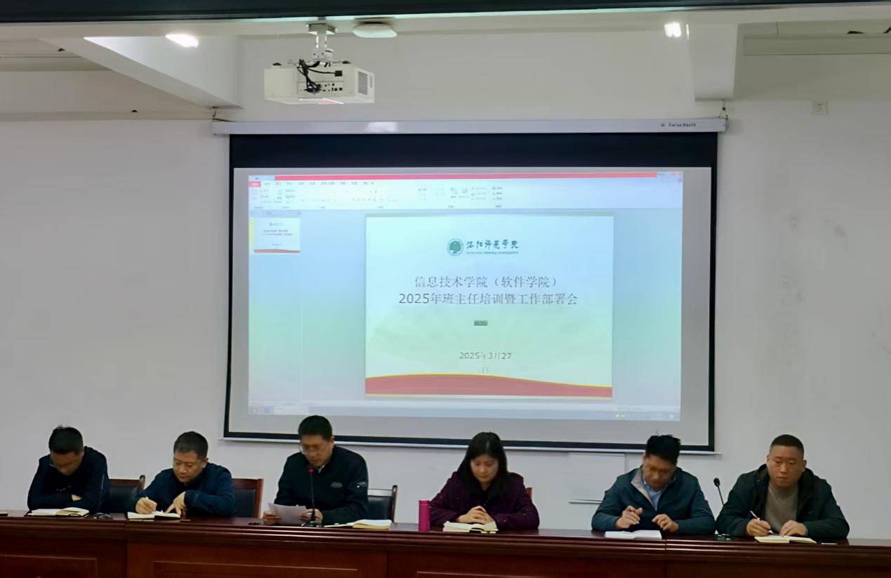 为进一步推进班主任队伍建设,充分发挥班主任在教育管理服务工作中的重要作用,促进学院教师队伍高质量发展,3月27日,信息技术学院(软件学院)在1楼报告厅召开2025年新学期班主任培训暨工作部署会。学院领导班子成员、全体班主任参加会议。