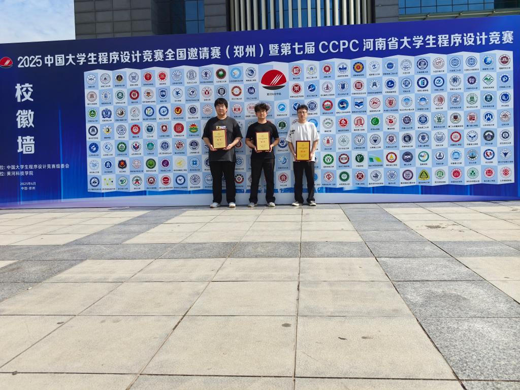 6月1日至2日,第七届CCPC河南省大学生程序设计竞赛暨2025中国大学生程序设计竞赛全国邀请赛(郑州)在黄河科技学院举办,本届共吸引全国193所高校的438支队伍、近1500名师生汇聚郑州。我院派出4支参赛队伍,经过五个小时的激烈角逐,获得省赛铜奖3项。