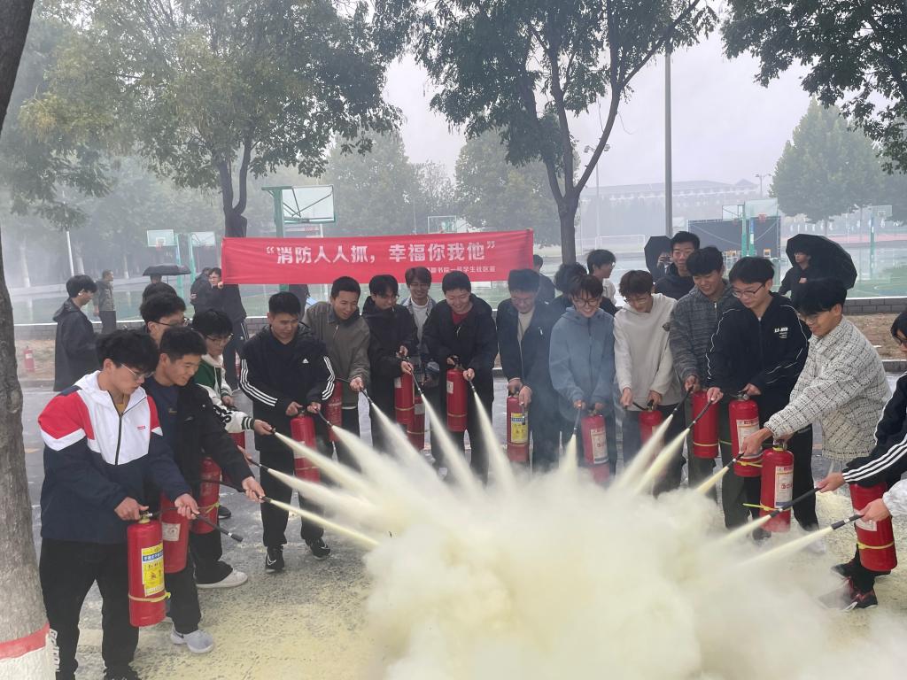 实操演练,提高自防自救能力。河南浪潮消防工程有限公司一级消防工程师张禹老师应邀为同学们现场介绍了灭火器的操作规程,普及了消防自救知识。随后,同学们在李园篮球场南侧(封闭路段)进行灭火器的实操演练,切实提高了自防自救能力。