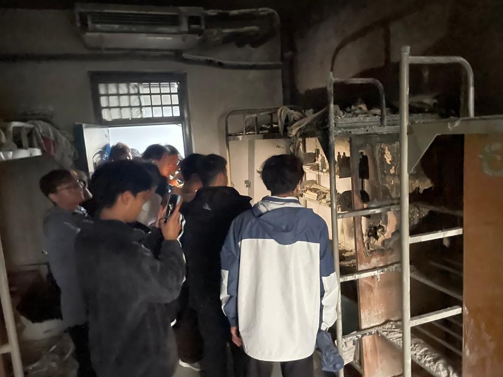 现场体验,绷紧消防安全之弦。书院社区组织学生集中观看了《2024年校园火灾案例警示》教育片,并实地参观了学校消防安全警示教育地——枣园公寓1437宿舍。触目惊心的火灾现场,让大家对火灾造成的严重后果,有了更直观的认识和更深刻的感受,同时意识到消防安全的极端重要性。