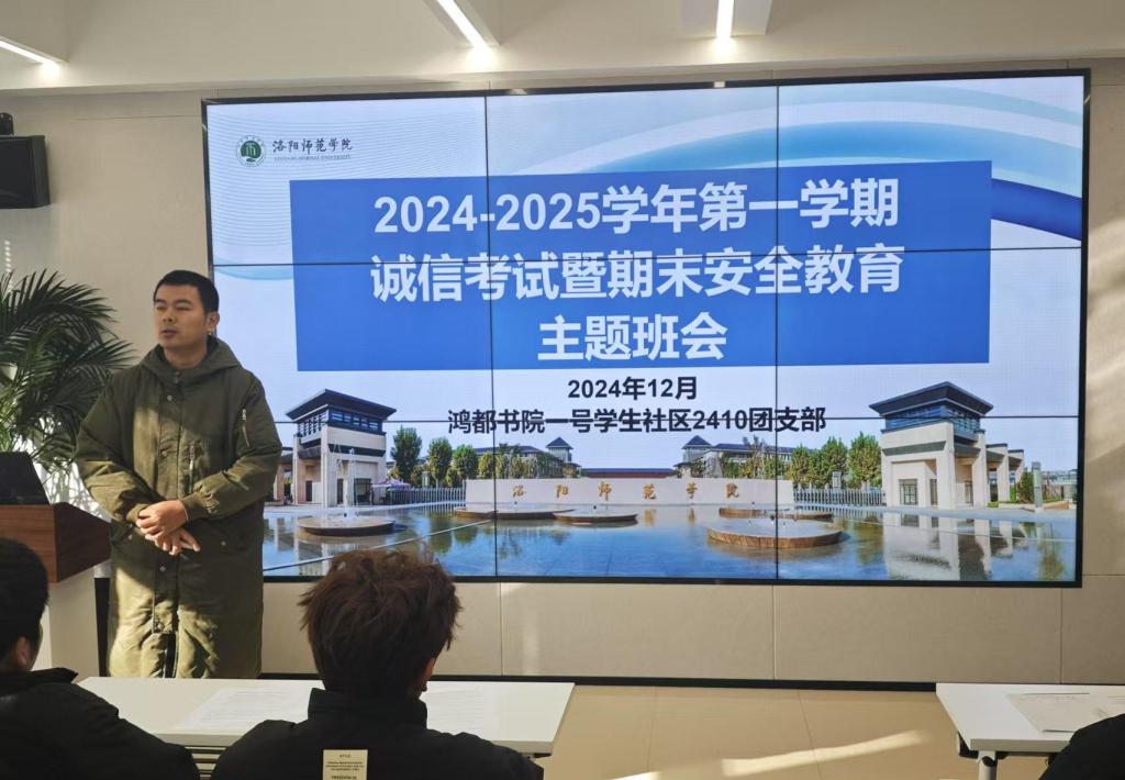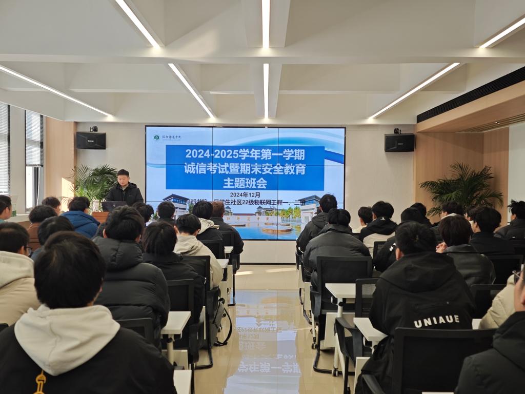 期末临近,假期将至,为加强学生考风考纪建设,营造我院更加公平、透明的考试环境,同时做好寒假期间生命安全教育宣传工作,鸿都书院一号学生社区对各年级各专业学生开展了诚信考试和安全教育主题班会。