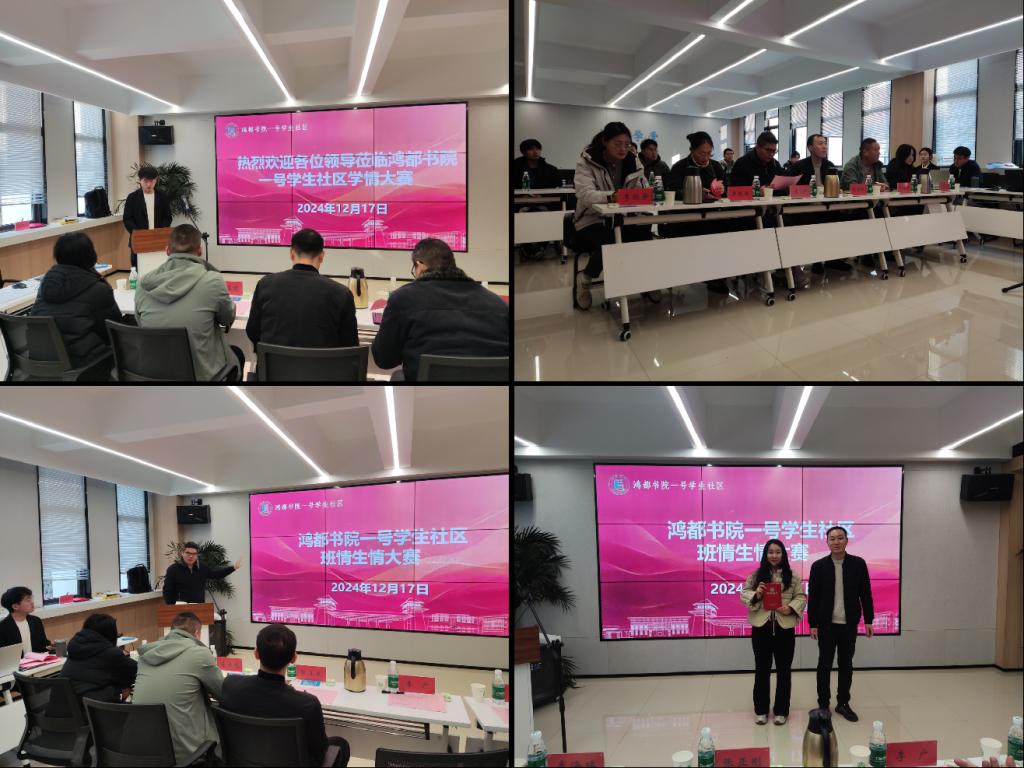 为切实提高辅导员工作能力,强化责任意识,12月17日,鸿都书院1号学生社区辅导员班情生情大赛在鸿都学堂如期举行。校党委组织部副部长张亚刚、校党委学工部(学生处)副部长(副处长)吴晓格,书院社区院长李广、院党委副书记李海瑞、辅导员代表李艳芳和学生代表冯凯雯应邀担任评委。