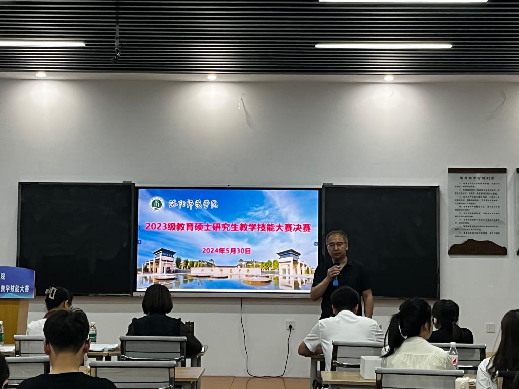 5月30日下午,党委研究生工作部(研究生处)于G3-111教室举办了2023级教育硕士研究生教学技能大赛。党委研究生工作部部长谭勇刚致辞,洛阳师范学院附属高级中学副校长杨丽、洛阳实验高中党政办主任陈亚东、我校化学化工学院李晓冬老师、外国语学院程锦老师、音乐学院单晓杰老师担任评委。经过学院初选,来自学科教学语文、数学、英语、思政、学前等13个专业的17名教育硕士研究生参加比赛。